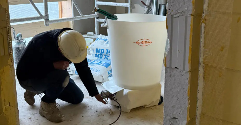Maak kennis met ’s werelds kleinste en lichtste gipsspuitmachine: De Stuc-Trolley! Deze innovatieve machine biedt jou als stukadoor of andere afbouwprofessional een efficiënte, gebruiksvriendelijke én betrouwbare oplossing voor je dagelijkse werkzaamheden. Met een gewicht van maar 24 kg neem je ‘m makkelijk overal mee naartoe – zelfs naar hogere verdiepingen!